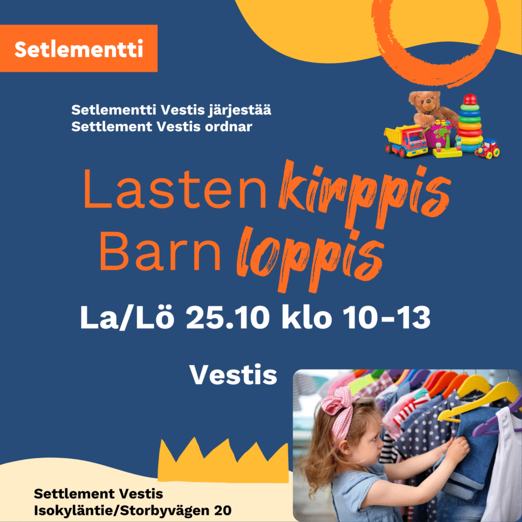 Lastenvaatteiden ja -tarvikkeiden kirppis Vestiksessä Gerbyssä lauantaina 25.10. kello 10-13.
