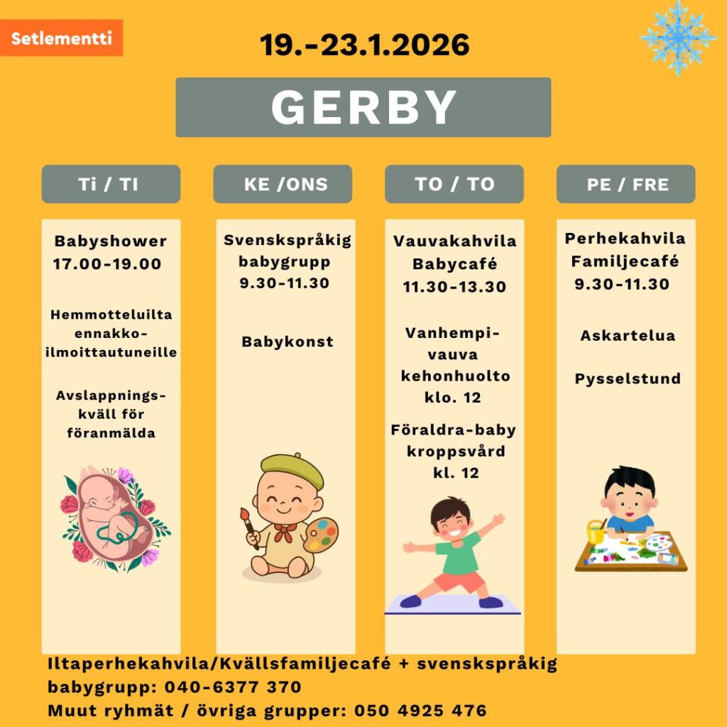 Ruotsinkielinen vauvakahvila kello 9.30-11.30 Vestiksessä Gerbyssä.
