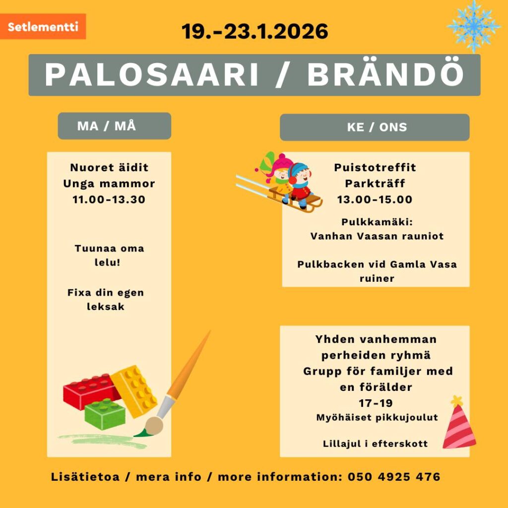 Vaasan Setlementillä on lapsiperheille tarkoitettua toimintaa Gerbyssä, Palosaarella ja Ristinummella.