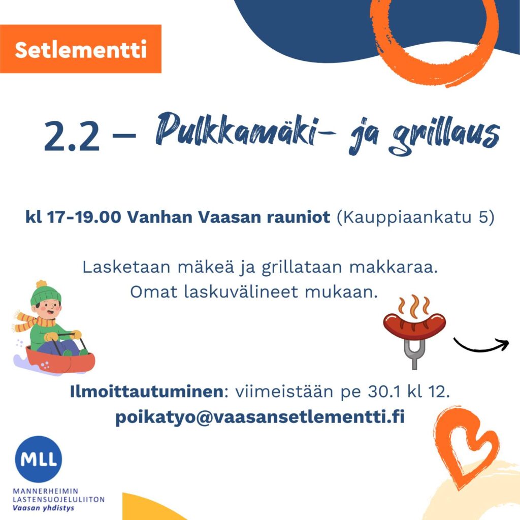 Orion-ryhmä 2.2. kello 17-19 Vanhan Vaasan raunioilla pulkkamäessä. Ilmoittautumiset viimeistään 30.1. kello 12 mennessä poikatyo@vaasansetlementti.fi.