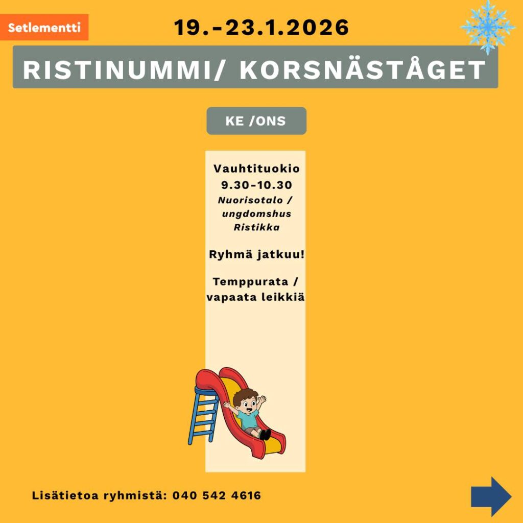 Vauhtituokio kello 9.30-10.30 Ristikalla Ristinummella. Ryhmä alkaa 21.1.