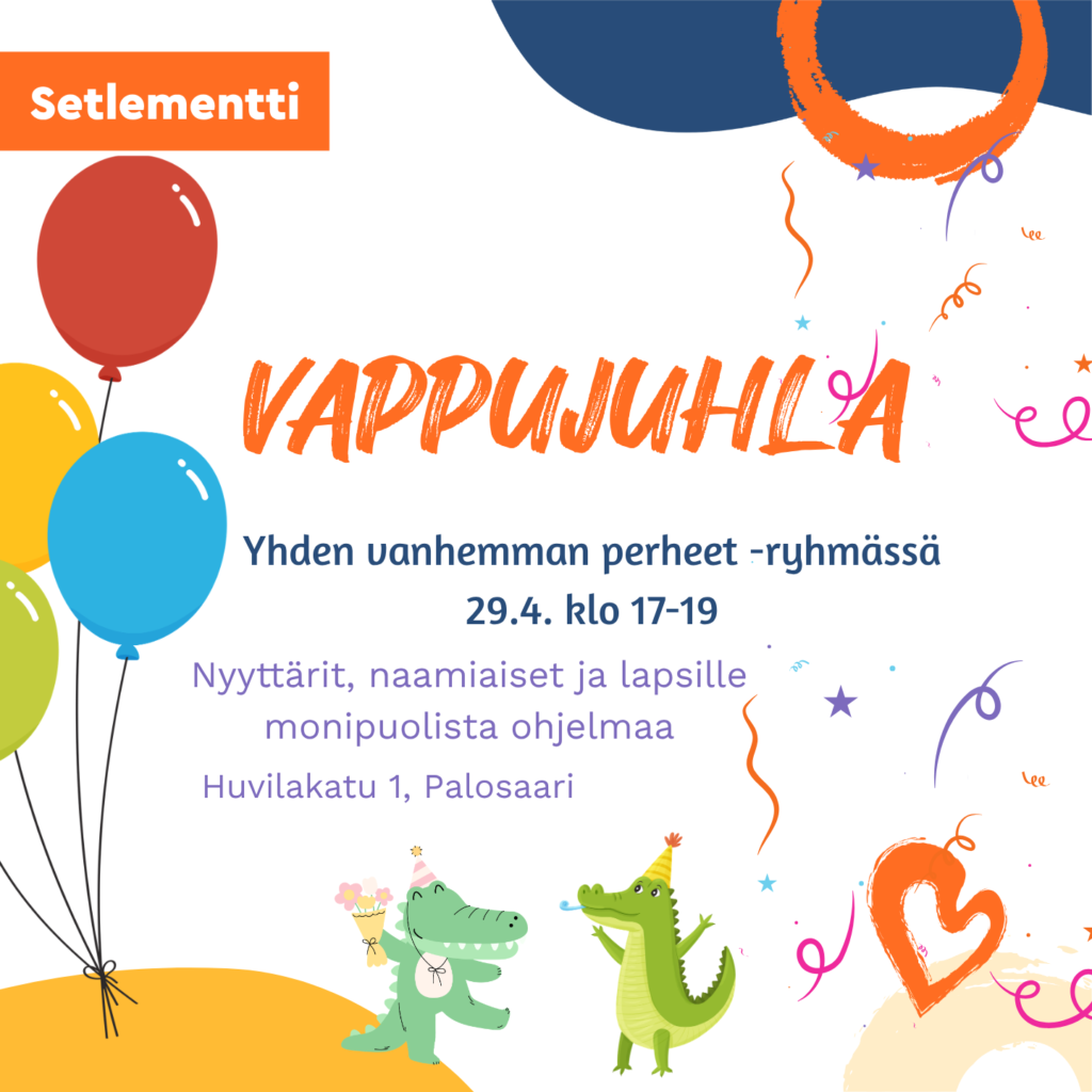 Yhden vanhemman ryhmä kello 17-19 Setlementtikeskuksessa Palosaarella.