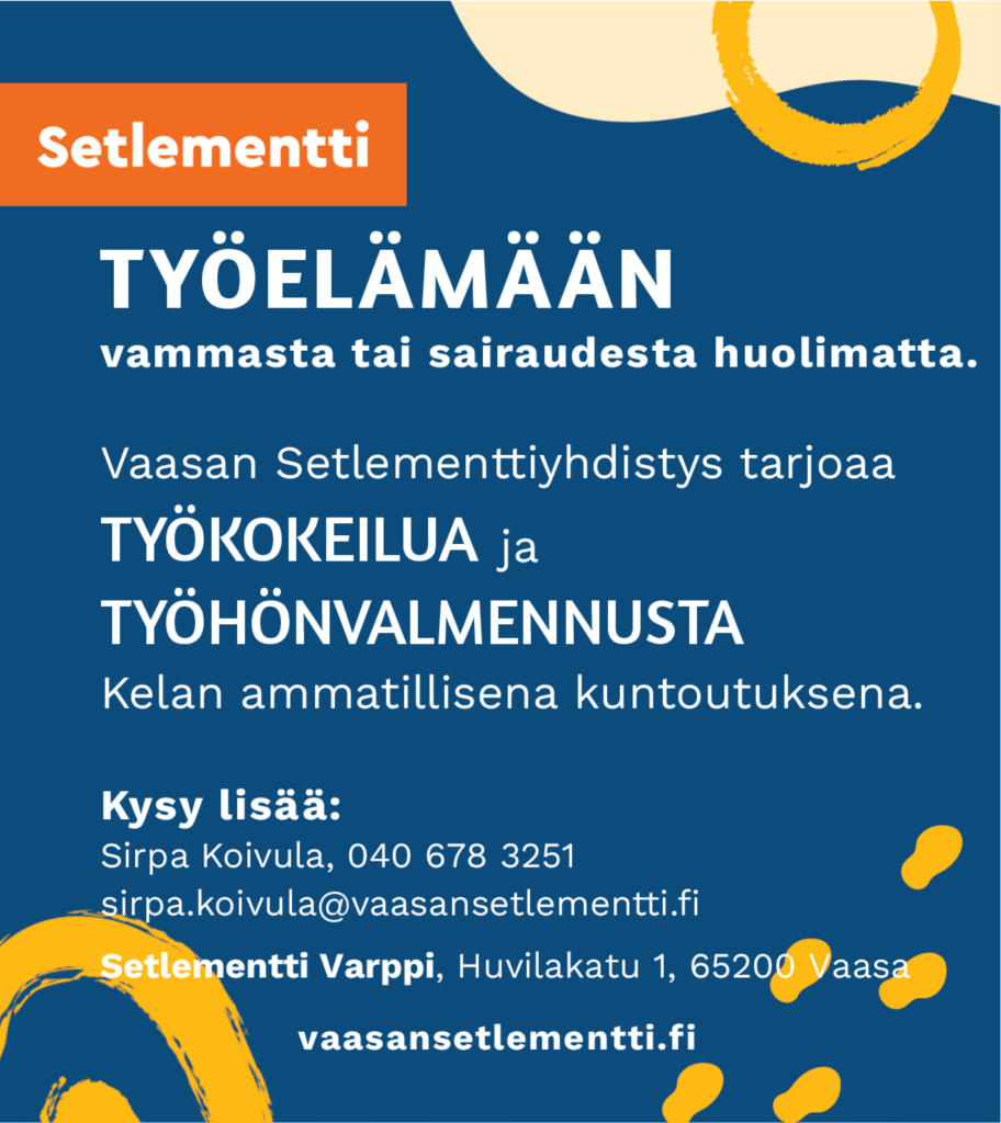 040 678 3251, sirpa.koivula@vaasansetlementti.fi.