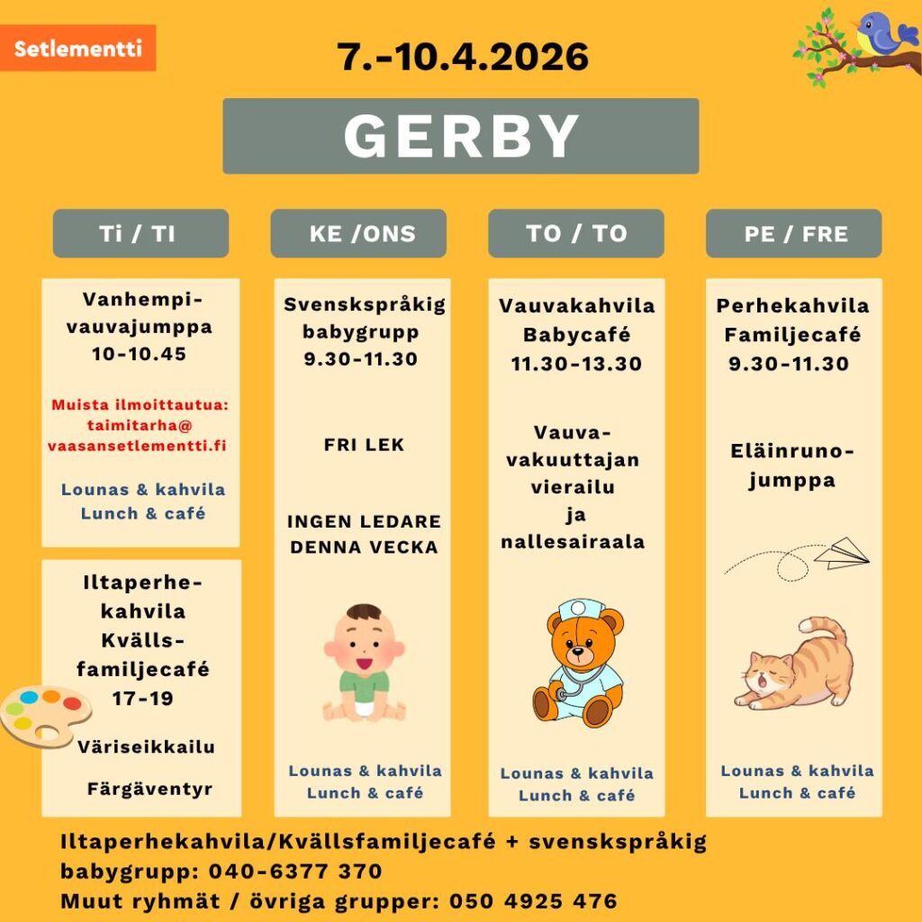 Svenskspråkigt babycafé kl. 9.30-11.30 Vestis Gerby.