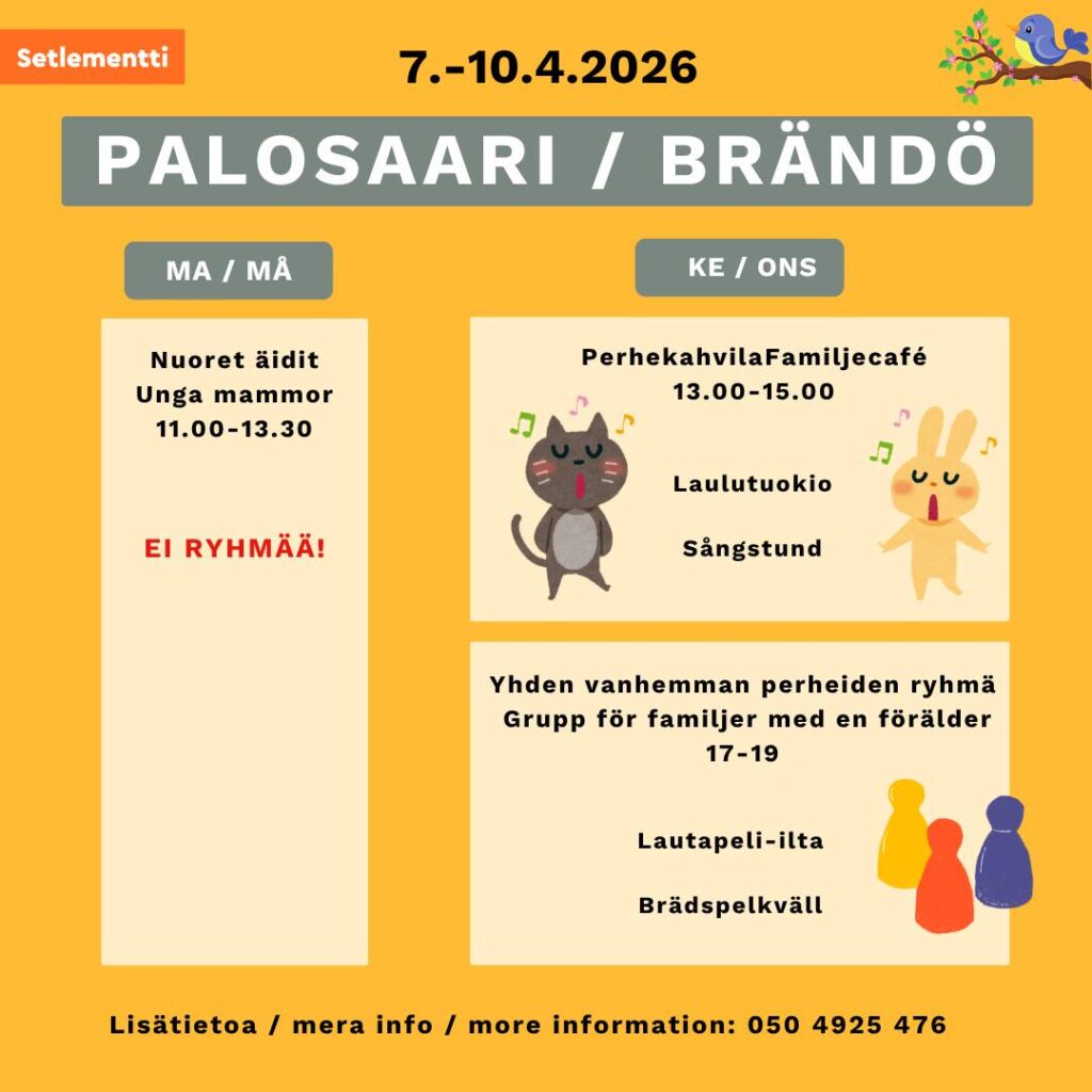 Grupp för familjer med en förälder kl. 17-19 Settlementcenter i Brändö.
