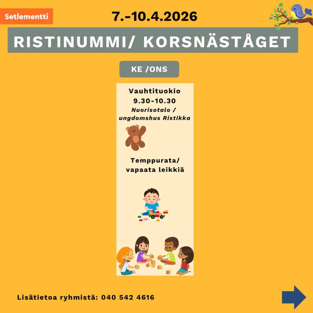 Vauhtituokio (jumppa för barn under skolålder) kl. 9.30-10.30 Ristikka Korsnäståget.