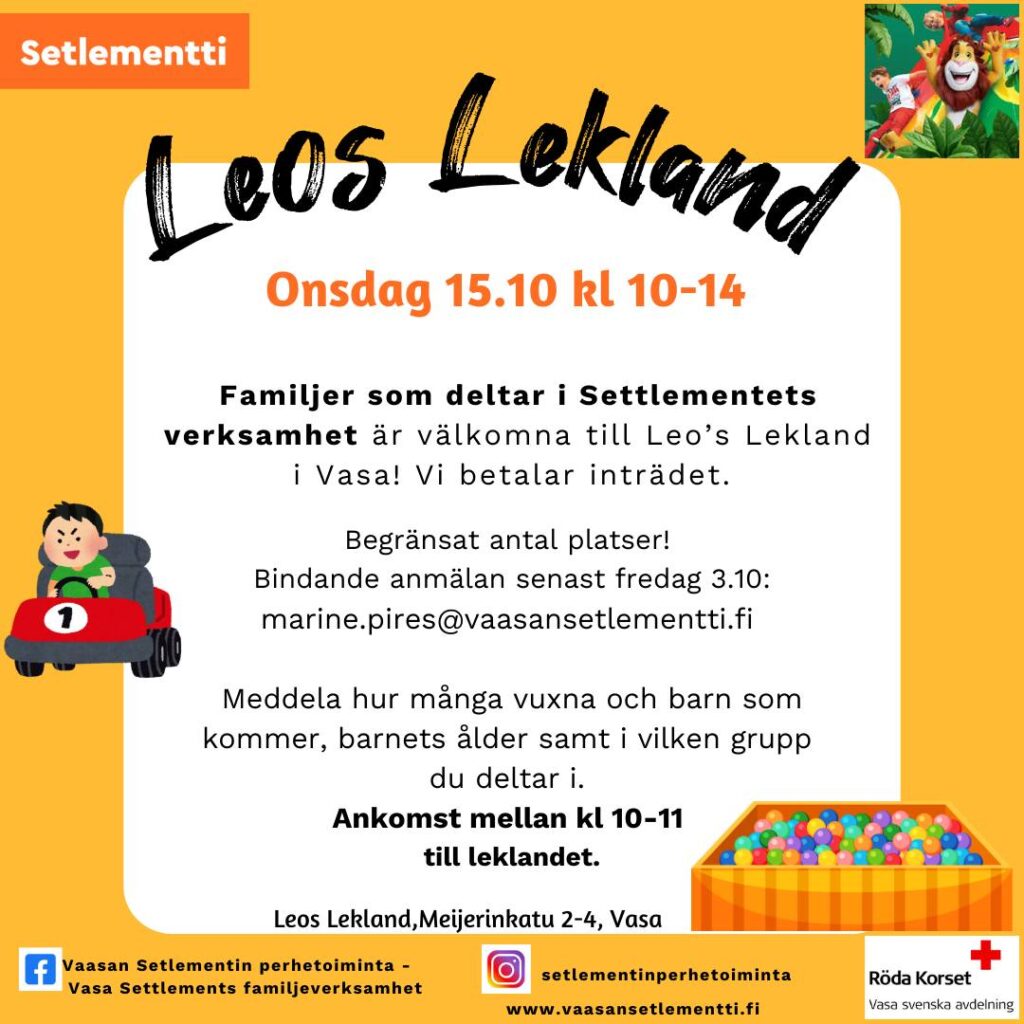 Onsdag 15.10 kl. 9.30-10.30 på Ristikka, Hinderbana och fri lek. Leos Lekland för dom som har anmält sig innan 3.10.